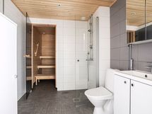 Molemmissa makuuhuoneissa on säilytyskomerot. Suojaisalle, lasitetulle parvekkeelle on käynti olohuoneesta. Jos pidät saunomisesta, oma sauna tuo lisää asumismukavuutta.