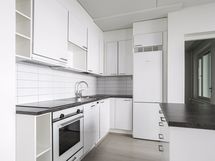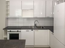 Keittiö-olohuone on yhtenäistä tilaa, mikä antaa avaruutta lisää. Keittiössä on kalusteuuni, liesitaso, jääkaappipakastin ja astianpesukone. Keittiön saareke lisää kivasti sekä lasku- että säilytystilaa. Pesuhuoneessa on tilavaraus pyykinpesukoneelle ja lisäksi samassa rappukäytävässä sijaitsee talopesula, joka on ilmainen.