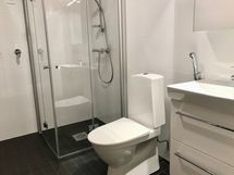- Suihku, Suihkuseinä, Pesukonevalmius, Lattialämmitys, Peilikaappi, Allaskaappi, Laattalattia, Laattaseinä