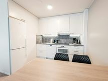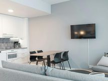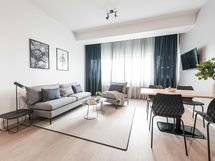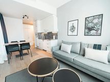 This modern and comfortable studio apartment is for two or a family with two kids. Comfortable and high-quality beds guarantee a good night’s sleep for two while the sofa-bed in the living room is perfect for the little ones in the family. Wi-Fi internet access, linen and final cleaning are always included in the price. Room is equipped with flat screen-TV, electric kettle, coffee maker, toaster and a hairdryer. Well-equipped kitchen has equipment for cooking, refrigerator, microwave-oven, dishwasher and integrated stoves for preparing all your favorite dishes. In addition, there is also private bathroom inside the room and plenty of room for your personal belongings. Shared laundry room, lounge, playroom and a sauna, adds extra comfort for your stay.