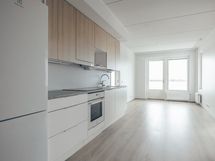 Kuudennen kerroksen kahden makuuhuoneen koti. Tämän kodin sydän, tyylikäs ja moderni avokeittiö, on varusteltu laadukkailla materiaaleilla. Yläkaapistojen vaalean puun sävy tekee tunnelmasta todella kotoisan. Ikkunoiden ollessa kahteen ilmansuuntaan täyttyy huoneisto luonnonvalolla. Molempien makuuhuoneiden ja eteisen yhteydessä mukavasti säilytystilaa. Kauniisti laatoitetussa kylpyhuoneessa liitäntä pyykinpesukoneelle. Iso lasitettu parveke tuo lisätilaa lämpiminä kuukausina.