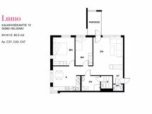 Tämän Lumo-kodin parvekkeelta pilkottaa meri rakennusten välistä. Näkymät asunnosta on pihapiiriin. Huoneet ovat tilavia ja helposti sisustettavissa. Erillinen wc nopeuttaa aamutoimia. Kodin kruunaa oma parveke ja sauna.