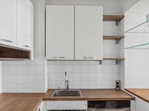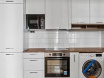 - Jääkaappipakastin, erillisuuni, liesitaso, mikroaaltouuni, astianpesukone, kaapistot, Pyykinpesukone.