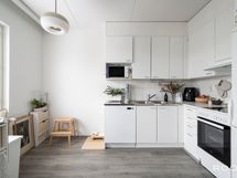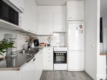 - VARUSTUS: Kaapistot, hana, allas, liesi, liesituuletin, astianpesukone, jääkaappi, pakastin, saareke.