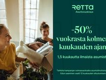 Vuokraetu - 50 % vuokrasta kolmen kuukauden ajan. Etu voimassa uusiin vuokrasopimuksiin. Vuokraedun saaminen edellyttää 12 kuukauden sitoutumista asuntoon.