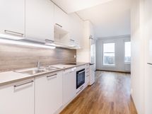 Tilava yksiö erinomaisella sijainnilla. Asunnossa laadukkaat materiaalit, kuten lautaparkettilattia. Keittiö on varusteltu moderneilla kodinkoneilla ja varustuksen kuuluu kalusteuuni, astianpesukone ja keraaminen liesi. Laatoitetussa kylpyhuoneessa liitäntä pyykinpesukoneelle.