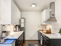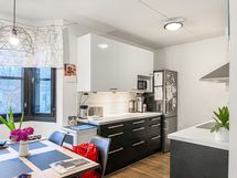 Tässä kodissa kulkee upea harmonia koko asunnon läpi. Keittiön vieressä, erkkerin edustalla, on täydellinen tila esimerkiksi keittiönpöydälle. Keittiö on hyvin varusteltu ja täyttää varmasti vaativammankin kokkailijan kriteerit. Koska kyseessä on läpitalon huoneisto, saat nauttia maisemista kahteen eri ilmansuuntaan ja asuntoon saa myös helposti läpivedon. Makuuhuoneen yhteydessä on runsaasti säilytystilaa ja kylpyhuoneessa on pyykinpesukoneelle paikka. Taloyhtiössä on myös sauna.