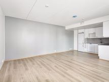 Tämän kodin ikkunallinen, tilava eteinen tarjoaa kivat puitteet kotiin saapumiselle. Avokeittiö, jossa mm. keraaminen liesitaso ja astianpesukone, jatkuu olohuoneena ja antaa näin avaraa tilantuntua. Makuuhuoneessa seinän väliin menevä liukuovi antaa enemmän vaihtoehtoisuutta huonekalujen sijoittelussa olohuoneen ja makuuhuoneen väliselle seinälle.