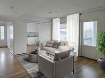Toimivan pohjaratkaisun ansiosta tämä Lumo-koti on oiva vaihtoehto pienelle perheelle tai työhuonetta kaipaavalle. Erillinen keittiö on erotettu olohuoneesta liukuovella. Olohuoneesta on kulku ihanalle lasitetulle parvekkeelle. Kaksi erillistä vaatehuonetta helpottaa järjestystä ja tuo tähän kotiin tavallista enemmän säilytystilaa. Eteisestä on kätevästi kulku sekä kylpyhuoneeseen että erilliseen wc:hen.