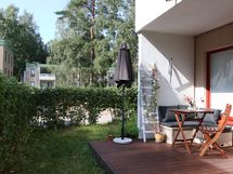 Tässä ensimmäisen kerroksen hyväpohjaisessa 56 neliön kaksiossa asut kuin rivitalossa. Omalla pienellä pihalla kasvaa mm. raparperia ja vadelmia ja tilaa on myös viljelylaatikolle. Aurinkoisella ja suojaisella terassilla voit nauttia kesästä ja grillailusta varhaisesta keväästä aina myöhään syksyyn asti. Sijainti metsän reunassa onkin täydellinen luontoa ja rauhaa arvostavalle urbaanille viherpeukalolle. Takapihalta pääsee suoraan Patolan metsään ja kuntoradalle, talvella jopa suoraan kotiovelta sukset jalassa hiihtoladulle. Metsä tarjoaa upeat ulkoilumaastot ja sieltä poimit myös mustikoita, vadelmia ja sieniä.
