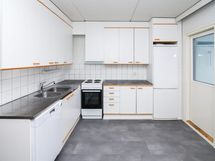 Käytännöllisessä keittiössä on tilaa astianpesukoneellesi ja paikka ruokapöydälle kotoisasti ikkunan äärellä.