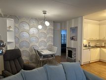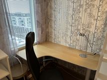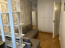 Vuokrataan valoisa kalustettu kaksio Aurinkolahden Vuosaaresta kerrostalon ylimmällä kerroksella merinäkymällä! Vuosaari alueena on erittäin monipuolinen, luonto ja upeat ulkoilumaisemat sekä harrastusmahdollisuudet ovat lähellä. Uimahalli kuntokeskuksineen, kirjasto, Columbus-kauppakeskus ja Vuosaaren metroasema ovat kaikki alle kilometrin säteellä. Lisäksi bussiyhteydet itään ja länteen lähtevät kätevästi suoraan metroaseman edestä. Vuosaaren uimaranta, ruokakaupat ja kahvilat ovat viiden minuutin kävelymatkalla. Lasitetulta parvekkeelta näkyy meri ja kaupungin paras uimaranta. Asunto sopii erityisesti henkilölle, joka opiskelee tai työskentelee kotona tietokoneella. Erillisessä huoneessa on täysin varustettu työtilat – iso kulmasähköpöytä ja toimistotuoli. Mukava vuodesohva helposti muuttuu sängyksi. Tilavassa olohuoneessa on keittiönurkka, vuodesohva, ruokaryhmä, sähkötakka ja keinuva/pyörivä nojatuoli. Keittiö on hyvin varustettu ja astianpesukone kuuluu varusteisiin. Kylpyhuoneessa/vessassa on kuivava pyykkipesukone. - Vuokra 1100€/kk - Sähkömaksut käytön mukaan - Vakuus 1kk vuokra ilman lemmikkiä ja 3kk:n lemmikkien kanssa - Taloyhtiölaajakaista 10M sisältyy vuokraan - Vuokralainen itse huolehtii huoneiston vakuutuksesta. Tarvittaessa voin auttaa sopimuksen tekemisessä. - Talossa on yhteinen sauna. Saunavuoro 1krt/vk. Saunamaksu 30e/kk - Vuokrasopimus tehdään toistaiseksi voimassa olevana. Voi vuokrata pitkälle tai lyhyelle ajalle. -Ei tupakoitsijaa. -Luottotiedot tarkistetaan.