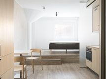 This lightly furnished studio comes with a 140cm bed, and a table and chairs in the living room. Cabinets, lighting, basic kitchen appliances and a washing machine are also included. You can personalise the space with your own furniture, textiles and decorative items. Studio is pet-friendly.