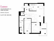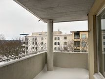 Kodin pohjaratkaisu on tilava. Keittiön päätyyn mahtuu hyvin ruokapöytä. Tilavan olohuoneen jatkeena on oma parveke, joka avautuu merelle päin. Molemmista makuuhuoneista sekä etenkin eteisestä löytyy säilytystilaa.