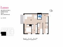 Tämä näppärä Lumo-koti on mitä mainioin perheasumiseen. Eteinen on reilun kokoinen, joka helpottaa lapsiperheen kiireisiä aamuja. Eteisestä on käynti kompaktiin kylpyhuoneeseen, jossa on pyykinpesukoneelle tilavaraus. Kaksi makuuhuonetta ovat vierekkäin ja suurempi makuuhuone erillään olohuoneen päädyssä. Olohuone on avara ja itse keittiöön mahtuu pieni ruokapöytä. Olohuoneesta on käynti lasittamattomalle parvekkeelle.