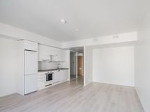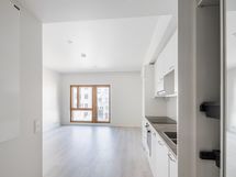 Koti sijaitsee sisäpihan suojassa pihatasolla ja ikkunoiden edustalla kukkivat kesän alussa alppiruusut. Asunnossa on lattialämmitys ja -viilennys. Ilmoituksen kuvat ovat lähes vastaavasta yksiöstä. Kuvista näkee asunnossa käytetyt pintamateriaalit.