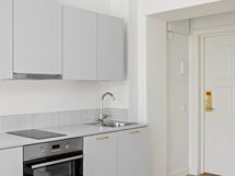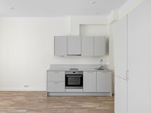 Keittiön varustelutasoon kuuluu mm. induktioliesi, astianpesukone ja jääkaappipakastin.