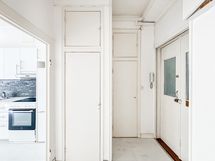 Tässä kodissa tilaa on kivasti ja se on myös käytetty upeasti. Säilytystilaa on mukavasti tarjolla ja alkovi tarjoaa kivasti ns. lisätilaa järkevän tilankäytön ansiosta. Keittiön puolelle mahtuu pieni ruokapöytä ja säilytystilaa löytyy mukavasti.