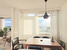 Asunnossa on moderni Kvik-avokeittiö sekä tilava olohuone, joista avautuvat suuret etelään ja pohjoiseen suuntautuvat ikkunat. Lasitettu parveke tuo lisää tilaa ja mahdollistaa merimaisemasta nauttimisen lähes ympäri vuoden. Vuonna 2020 valmistunut LVI-saneeraus takaa huolettoman asumisen. Laadukkaat parkettilattiat, kauniit materiaalit ja runsaat säilytystilat tekevät arjesta sujuvan.