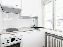 Asunnossa on poikkeuksellisen kiva pohjaratkaisu: Huoneeseen avautuu alkovi joka toimii makuutilana, ja sen voi verhoilla eristää muusta huoneesta. Keittiö sijaitsee huoneen nurkassa, ja omaa erillisen ikkunan. Kylpyhuoneessa on pyykinpesukone valmiina.