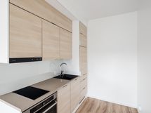 Moderni keittiö tekee arjen kokkaamisesta sulavaa ja helppoa. Täysvarusteisesta keittiöstä löydät kvartsitason, jääkaapin pakastelokerolla, astianpesukoneen, induktiolieden ja integroidun uunin. Kodin suuret ikkunat ja ranskalainen parveke takaavat ympärivuotisen valoisuuden ja näkymät ovat lounaaseen kohti Suvilahtea ja Kalliota.