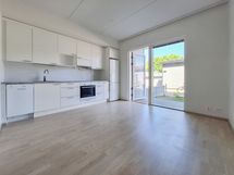 Tämä ihana pikkukoti tarjoaa loistavat puitteet viihtyisään asumiseen! Seinät ovat raikkaan valkoiset ja lattiat ylellistä parkettia. Sisustamista helpottaa vesikiertoinen lattialämmitys, kun pattereita ei ole. Suuret ikkunat tuovat tilantuntua. Modernista keittiöstä löytyy kaikki tarpeellinen kotikokin tarpeisiin astianpesukoneineen ja keraamisine liesineen. Tyylikkäästi laatoitetussa kylpyhuoneessa on pesukone valmiina asukkaan käyttöön. Kokonaisuuden kruunaa oma terassi ja piha, jossa on mukava istua kesäiltaa viettämässä!