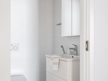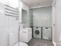 - Pesutilojen kuvaus: VARUSTUS: wc, suihku, allaskaappi, peilikaappi, pideesuihku, pyykinpesukone, kuivausrumpu,