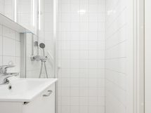 - Varustus: suihkuseinä, pesukoneliitäntä, wc-istuin, suihku, peilikaappi.