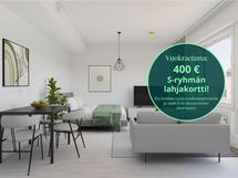 Etuna 400 € lahjakortti S-ryhmän liikkeisiin. Etu voimassa uusille asiakkaille uusiin vuokrasopimuksiin. Vuokraedun saaminen edellyttää 6 kuukauden sitoutumista asuntoon.
