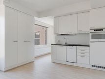 Kolmannen (3) kerroksen kotoisa yksiö ranskalaisella parvekkeella. Asunnossa vaaleilla pintamateriaaleilla sekä laadukkailla kodinkoneilla varusteltu moderni avokeittiö. Laatoitettu kylpyhuone tarjoaa käytännöllisyyttä ja siellä on liitäntä pyykinpesukoneelle, jotta arjen askareet sujuvat vaivatta. Asunnossa lemmikit ovat sallittuja, joten myös karvaiset ystävät ovat tervetulleita tähän kotiin.