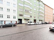 Sijainti on mahtava, sillä tien toisella puolen on Alepa 24h ja viereiseltä Mannerheimintieltä pääset niin bussin kuin ratikankin kyytiin.