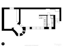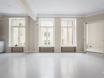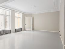Asunnon suuria huoneita avartaa entisestään ja tuo tilan tuntia upea huonekorkeus. Huoneistossa on kauttaaltaan kylpyhuonetta lukuun ottamatta erittäin kaunis harmaa lautalattia. Huoneet ovat tilavat ja avarat, ja helposti omien makumieltymysten ja tarpeiden mukaan kalustettavissa. Vanhan rakennuksen persoonalliset muodot tekevät tästäkin asunnosta yksilöllisen ja mielenkiintoisen. Kahden suuren huoneen lisäksi huoneistossa on ihanan erkkeri-ikkunan kulmauksessa tilaa vaikka erilliselle työskentelynurkkaukselle. Säilytykseen on kaapistojen ohella tarjolla huoneistolle kuuluva oma kellarivarasto.