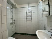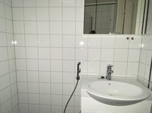 Uusittu v. 2015! Kokonaan kaakeloitu, suihku, peilikaappi, lavuaari & allaskaappi, lattialämmitys, pk-liitäntä, wc ja pidé-suihku.