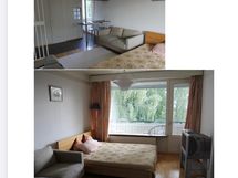 Ylimmän kerroksen kulmahuoneisto tarjoaa 28 m² tehokasta tilaa, johon kuuluu tilava huone, ikkunallinen pienkeittiö, vaatehuone, uusittu kylpyhuone sekä suuri, etelään avautuva lasitettu parveke. Asunto on juuri osittain remontoitu (2025), ja pesukoneella varustettu moderni kylpyhuone on täysin uusittu. Kalusteet uusittu, kuten 140 cm leveä parisänky, pieni vuodesohva, sivupöydät, baarituolit ja matto. Asunnossa on puulattiat sekä laatoitettu keittiö ja eteinen. Keittiövarusteet, mikroaaltouuni, imuri, silityslauta ja muut tarvittavat tarvikkeet sisältyvät vuokraan.