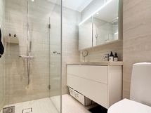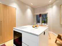 Kodin sydän on tilava olohuone, jossa on tilaa sohvaryhmän lisäksi myös ruokailuryhmälle. Asunnossa on kaksi tilavaa makuuhuonetta, joista toisen yhteydessä erillinen wc. Kolmas, sisäpihan suuntaan oleva makuuhuone sopii hyvin työhuoneeksi. Erillinen moderni keittiö on varusteltu laadukkailla integroiduilla kodinkoneilla. Saareke tuo keittiöön lisää työskentely- ja säilytystilaa. Keittiön kaapistoon sijoitat myös pesutornin.