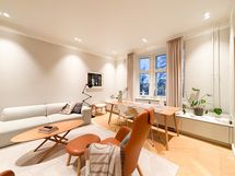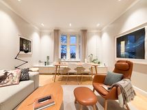 Asunnon suuret ikkunat tuovat runsaasti luonnonvaloa ja sijainti tarjoaa kauniit näkymät sekä sisäpihan, että Kaisaniemen- ja Eläintarhanlahden suuntaan. Tämä tyylikäs koti sopii hyvin niin perheelle, pariskunnalle kuin etätyötä tekevälle.