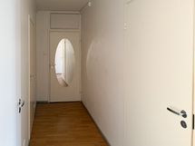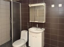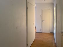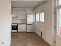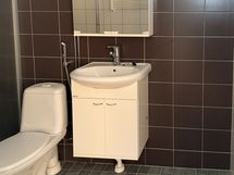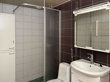 Kodissa on laminaattilattia ja maalatut seinät. Kylpyhuone on laatoitettu harmaalla ja valkoisella laatalla. Pyykinpesukoneelle löytyvät myös liitännät.