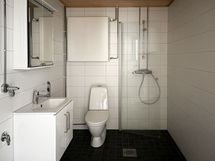 Huippu kodin varustukseen kuuluu integroitu liesi, uuni ja astianpesukone. Kylpyhuoneesta löytyy tyylikäs allaskaappi, peilikaappi ja liitännät pesukoneelle, sekä kaunis lasiseinä suojaamassa suihkutilaa.