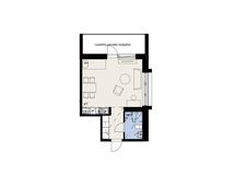 The apartments are equipped with high quality materials, such as laminate floor and tiling in the bathroom. The kitchen is equipped with a dishwasher, a fridge-freezer (some of the studios have a fridge with a freezer compartment), and an oven with a ceramic hob. The light coloured materials bring lightness to the apartment. Some apartments have a balcony and some have a french balcony.