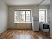 - Keittiön varusteet: Jenkkikaappi, liesi ja mikroaaltouuni. Liesi: Keraaminen liesi.