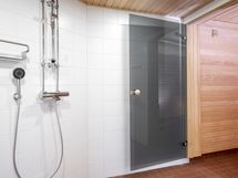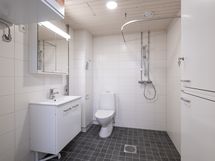 - Suihku, Suihkuseinä, Pesukonevalmius, Peilikaappi, Laattalattia, Laattaseinä, Lattialämmitys