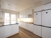 - Tilaa isolle ruokapöydälle, Paljon kaappitilaa, Paljon työskentelytilaa, Suuri tiskipöytä, Laminaattitasot, Astianpesukone, Keraaminen liesi, Liesituuletin, 2 kpl Jää-pakastinkaappi