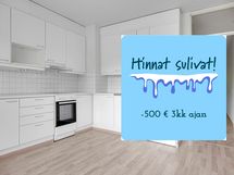 HINNAT SULAA - KAMPANJA: Uusiin vuokrasopimuksiin -500€ alennus kolmen ensimmäisen täyden kuukauden vuokrasta, kun sopimus alkaa viimeistään 31.3.2026. Sopimukseen sitouduttava vuodeksi. Mikäli sopimus irtisanotaan ennen ensimmäistä mahdollista irtisanomispäivää, tulee maksettavaksi 1 kk vuokraa vastaava sakko. Kampanjoiden yhteydessä vakuus vain 350€. Asunto on mahdollista vuokrata myös ilman kampanjaa.