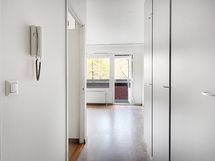 Suloinen, neljännen kerroksen yksiö lasitetulla parvekkeella.