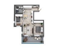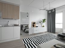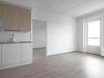 Kolmannen kerroksen kahden makuuhuoneen koti isolla lasitetulla parvekkeella. Tämän kodin sydän, tyylikäs ja moderni avokeittiö, on varusteltu laadukkailla kodinkoneilla. Yläkaapistojen vaalean puun sävy tekee tunnelmasta todella kotoisan. Ikkunoiden ollessa kahteen ilmansuuntaan täyttyy huoneisto luonnonvalolla. Molempien makuuhuoneiden ja eteisen yhteydessä mukavasti säilytystilaa. Pienempi makuuhuone toimii hyvin työ- tai lastenhuoneena. Kauniisti laatoitetussa kylpyhuoneessa liitäntä pyykinpesukoneelle.