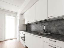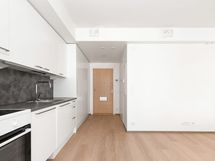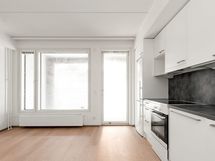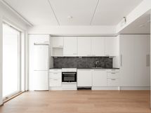 Kaupunkilaisen koti lähellä kaikkea Moderni vuokra-asunto Jätkäsaaressa Nykyaikainen pikkukoti on avoin ja selkeä. Keittiötilan ja olohuoneen muodostaman yhtenäisen tilan kalustat helposti omaan tyyliisi sopivaksi. Reilun kokoinen parveke on lasitettu. Eteisen komerot ovat valkoisia ja ikkunoissa on valmiina sälekaihtimet. Lattia on vaaleaa tammilaminaattia ja seinät on maalattu valkoisiksi. Keittiökaapistot ovat raikkaan valkoiset ja ylä- ja alakaappien välinen tila sekä työtaso ovat harmaata laminaattia. Varustukseen kuuluu astianpesukone, induktioliesi ja jääkaappipakastin. Kodinkoneet ovat kalusteisiin integroituja. Kylpyhuoneessa on valkoiset SATOn Kide-malliston kalusteet. Seinät ovat valkoista laattaa ja lattia on harmaa. Pesukoneelle on paikka.