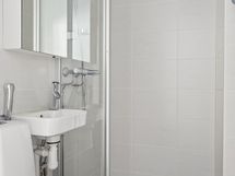 - Kylpyhuone, suihku, suihkuseinä, peilikaappi, pesukoneliitäntä.