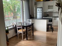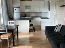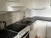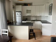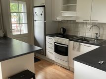 Paljon kaappitilaa, astianpesukone, sähköliesi, liesituuletin, jääkaappi-pakastinlokero