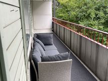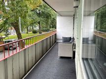 Avara ja valoisa kaksio koko huoneiston levyisellä parvekkeella