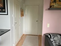 Toimiva ja avara pohjaratkaisu, jossa on vaatehuoneen ja kaappien ansiosta runsaasti säilytystilaa. Keittiöstä ja makuuhuoneesta on käynti koko asunnon levyiselle parvekkeelle, joka tuo lisäneliöitä keväästä pitkälle syksyyn. Kylpyhuone on päivitetty putkiremontin yhteydessä, ja sinne mahtuu pyykinpesukone. Hiljattain pintaremontoidussa keittiössä on mukavasti kaappitilaa ja kokkailuun sopivia tasoja, ja sen varusteluihin kuuluu arkea helpottava astianpesukone.